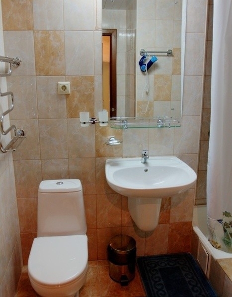 Сан/узел: ванна, унитаз, биде, раковина, фен.